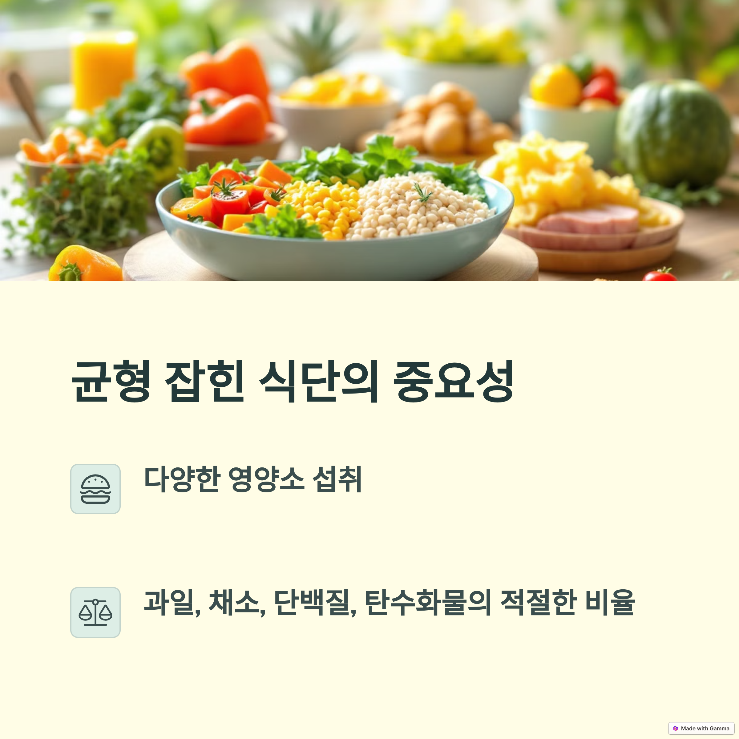 다양한 영양소를 골고루 섭취하고, 규칙적인 식사를 하세요.
