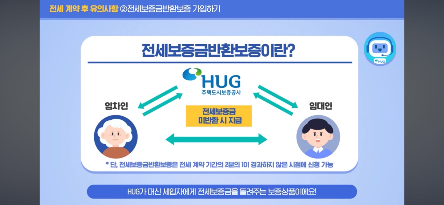 임대인이 전세보증금을 돌려주지 않을 경우 주택도시보증공사 HUG에서 전세보증금을 받을 수 있습니다.