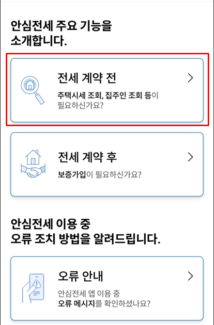 플레이스토어나 앱스토어에서 "안심전세앱"을 치시고 다운을 받습니다. 아래 사이트에서 다운로드하셔도 됩니다.
