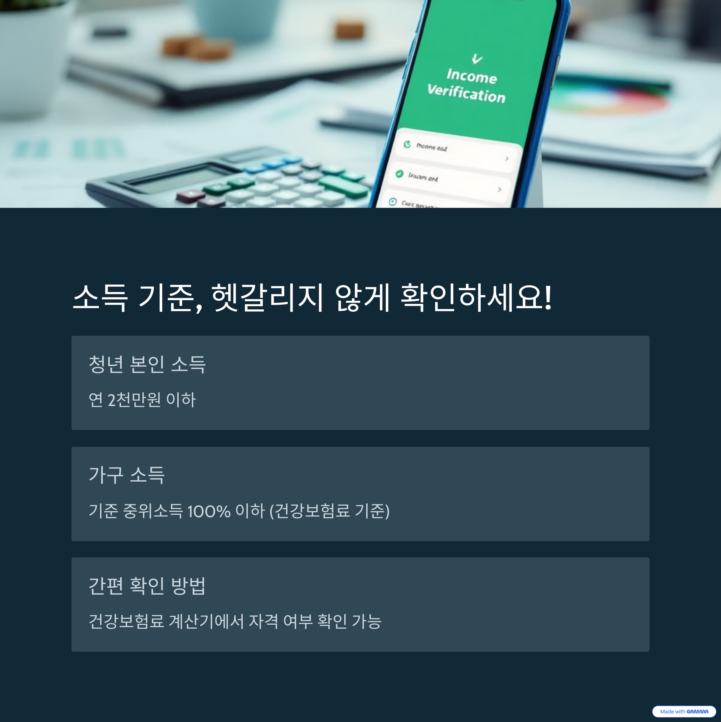 - 가구 소득: 중위소득 100% 이하 (약 월 220만 원 ~ 270만 원 이하, 가구 구성원 수에 따라 달라짐)