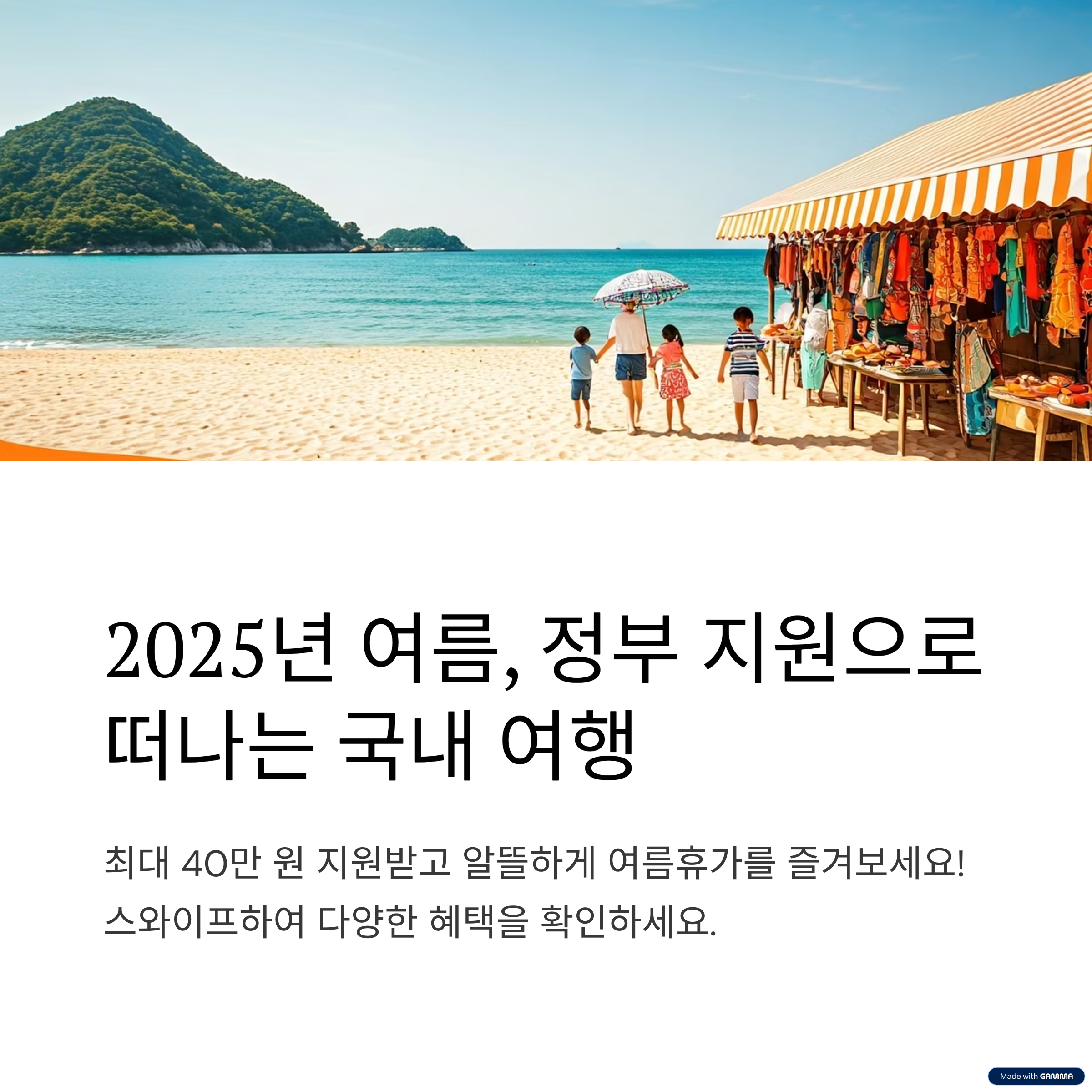 2025년 여름, 정부의 다양한 지원 정책을 활용하여 국내 여행을 계획해보세요. 경제적인 부담을 줄이면서도 풍성한 여행을 즐길 수 있는 기회입니다.(Visit Korea)